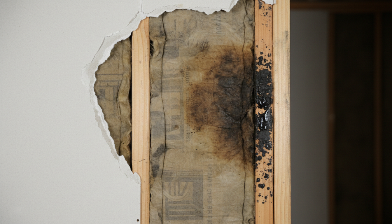 - In areas with prolonged moisture, such as behind walls with water leaks or flood-damaged materials