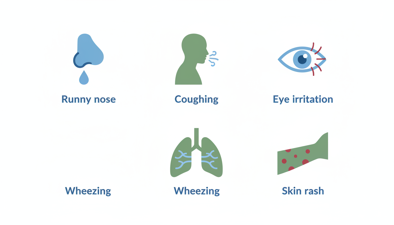- Respiratory symptoms such as wheezing, shortness of breath, and chest tightness