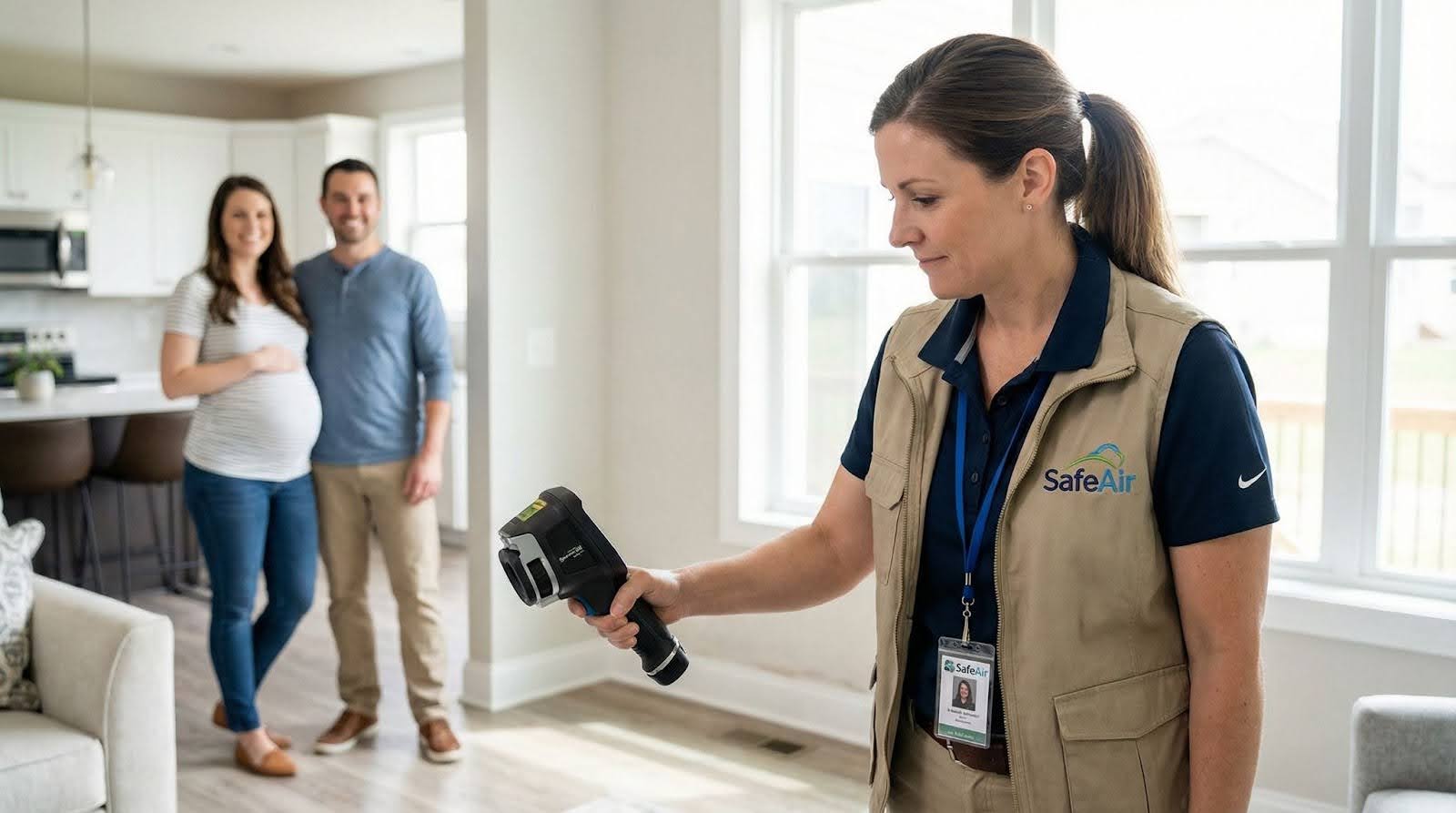 SafeAir Certified Mold Inspection Inc. uses advanced tools and science‑based methods to find black mold, other mold species, and moisture sources without unnecessary demolition. This approach helps protect pregnant women, babies, and families by guiding safe remediation and minimizing additional exposure during the cleanup process. After remediation is complete, post-remediation clearance testing ensures that mold levels have returned to safe levels before families reoccupy treated areas.